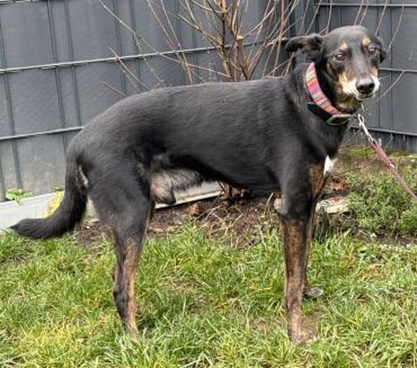 Unsere Patricia hat Roscas in einem städtischen Tierheim entdeckt. Ganz dünn, ein trauriger Blick. Die Karte an seinem Zwinger sagt uns, das er 2016 ins Tierheim kam, als Junghund. Seit 9 Jahren wartet er auf ein Zuhause, seit 9 Jahren wartet er auf Liebe und Zuneigung für einen so menschenbezogenen Hund eine sehr lange Zeit.
