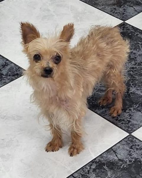 Geb.: 2013, Hündin, klein (Schulterhöhe 30 cm, Gewicht 2,8 kg), kastriert, hundeverträglich