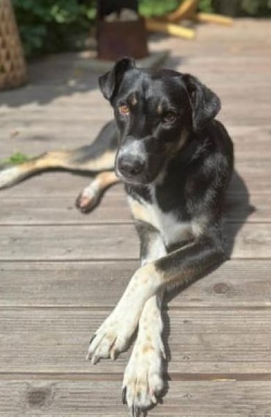 Mit den beiden Hündinnen vor Ort war Ronin durchweg unkompliziert. Er verhält sich ruhig, respektvoll und zeigt keinerlei Ressourcenverteidigung - dadurch war das Zusammenleben von Anfang an harmonisch. Auch das gemeinsame Alleinbleiben klappte problemlos.