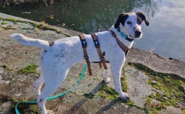 Beim Gassigehen ist Ozzy aktiv, verspielt und aufmerksam. Er orientiert sich gerne am Menschen, läuft bereits gut an der Leine und nimmt Körpersprache sowie Worte sehr bewusst wahr. Draußen bellt er anfangs gelegentlich fremde Hunde oder Männer an, lässt sich dabei aber gut ansprechen und korrigieren. Gleichzeitig zeigt er beim Spazierengehen jagdliche Motivation, weshalb hier weiterhin Training notwendig ist.