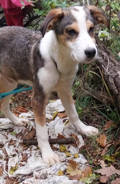 Dario, geboren im Juni 2025, ist ein kleiner Mischlingsjunge, der mittelgroß werden wird.