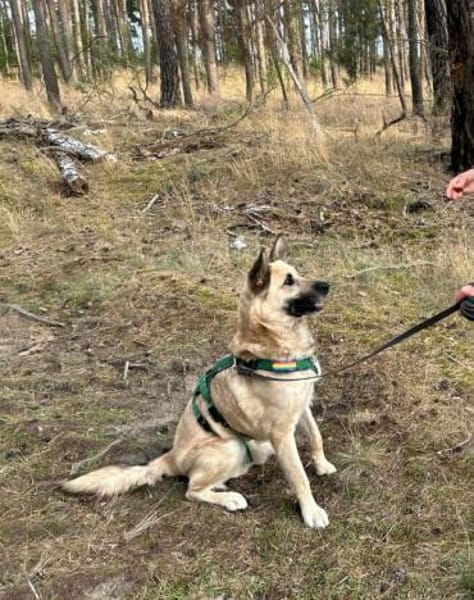 2022 fanden wir den wunderschönen Schäferhundmischling in der Ukraine, in einem wochenlang von Russland besetzten Gebiet nördlich von Kiew. Damals nannten wir ihn Nord.