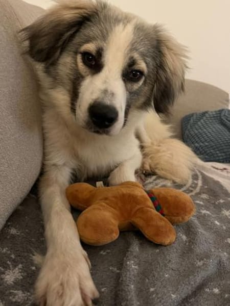 Gemeinsam mit meinen zwei Geschwistern wurden wir im Frühjahr 2023 auf der Straße gefunden. Seitdem wuchsen wir in einem Tierheim in Mazedonien auf, bis ich im Frühsommer 2024 auf eine Pflegestelle in Deutschland reisen durfte. Ich war schon immer der schüchternste unter uns und habe meinen Bruder Cosmo und Schwester Cookie bewundert, die voller Freude jeden Menschen begrüßten und immer im Trubel dabei waren. Für mich war das Tierheim jedoch kein guter Ort, auch wenn wir dort sicher waren. Die vielen Hunde, der Lärm und keinerlei Möglichkeit dem Trubel zu entfliehen, haben mich stark gestresst. Ich habe verzweifelt nach einem Rückzugsort für mich gesucht und letztendlich ein Erdloch unter einigen Brettern als mein Versteck vor dem Tierheimalltag genutzt. Nach vier Monaten auf meiner Pflegestelle fand ich mein Zuhause, welches anfänglich den passenden Eindruck machte. Bedauerlicherweise habe ich keine Geduld und kein Verständnis erfahren, weshalb ich heute erneut auf einer Pflegestelle lebe, die besser auf meine Bedürfnisse eingehen kann. Hier erfahre ich endlich die Ruhe, die ich brauche.