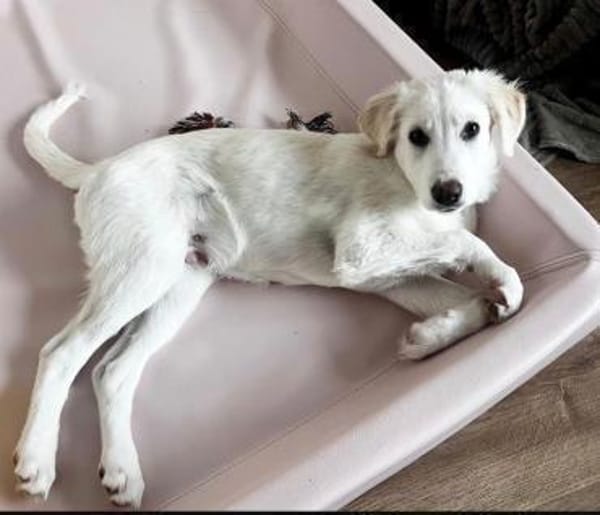 RAFFAELLO, der aufgrund seiner hellen Fellfarbe an ein Kokosbällchen erinnert, ist ein ganz bezaubernder kleiner Welpe. Aufgeweckt, an Allem interessiert, sehr zutraulich und natürlich überaus verspielt.