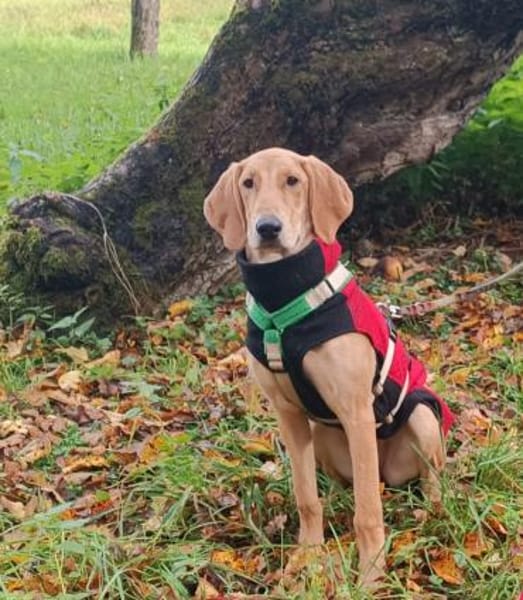Ross, jetzt Canella, weiblich, Segugio Italiano Mischling, geboren am 15.04.2025, derzeit ca. 57cm, ca. 25kg, ist eine schlanke, bewegungsfreudige, soziale und intelligente Junghündin. Ross liebt den Kontakt zu ihren Artgenossen, spielt für ihr Leben gerne und zeigt sich bei Hundebegegnungen immer interessiert und aufgeschlossen. Wenn sie von ihren Artgenossen Grenzen gesetzt bekommt, akzeptiert sie diese bedingungslos. Canella hat schon viel gelernt in ihrem kurzen Leben: in der Hundeschule ist sie strebsam, kann auf Handzeichen Sitz, Platz und Bleib (diese Zeichen hat sie nur nonverbal erlernt!). Sie ist sehr wissbegierig, lernt schnell und liebt den Kontakt mit ihren Menschen. Am Apportiertraining mit dem Dummy zeigt sie großes Interesse und sie hat auch gelernt an ihrem Platz zu bleiben ,bis sie an ihr Futter darf! Beim Autofahren fährt sie am Liebesten in einer Box mit und verhält sich dabei ruhig und gelassen.