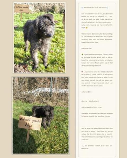 Alex ist bereit, mit seinen Menschen durch dick und dünn zu gehen man muss ihm nur am Anfang die Sicherheit geben, die er braucht. Wer schenkt diesem wuscheligen Charmeur ein Zuhause?