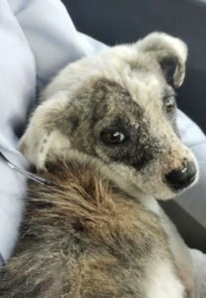 Sandy wurde von Luiza auf einer ihrer Fütterungsfahrten in einem schlechten Zustand auf einer Straße gefunden. Sie hat derzeit auch Hautprobleme und wird behandelt.