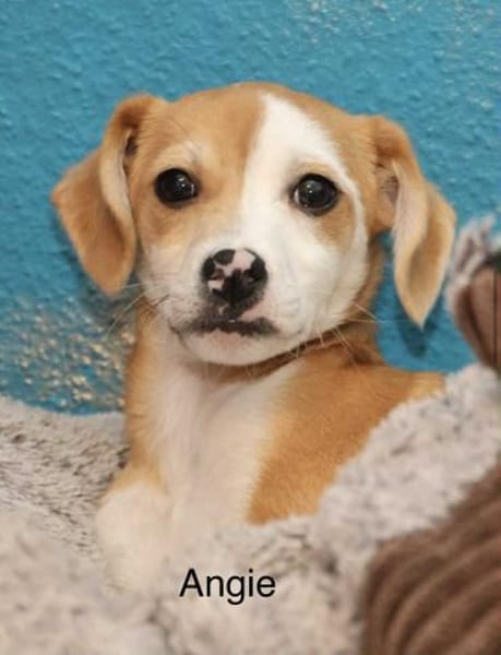Angie ist eine zutrauliche und verspielte kleine Hündin. Sie spielt gerne mit ihren zwei Schwestern.