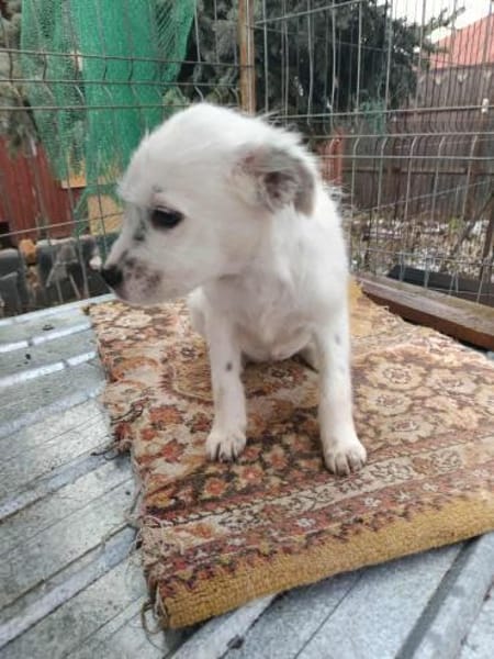 Rose, klein, zart, sucht Körbchen: Welpe zur Adoption