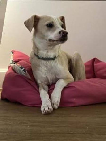 Mila wurde als Welpe auf der Straße gefunden und durfte in einer liebevollen Familie aufwachsen. Sie lebt dort mit einem Kind und einem weiteren Hund und kennt das Leben im Haushalt bereits gut.