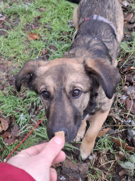 Fremden gegenüber ist Pino noch vorsichtig und zurückhaltend, doch seine Neugier siegt immer häufiger. Fortschritte sind da manchmal klein, aber stetig. Spaziergänge in ruhiger, ländlicher Umgebung genießt er inzwischen sehr. Er läuft ordentlich an der Leine, orientiert sich an seiner Bezugsperson und zeigt aktuell keinen Jagdtrieb. Neue Reize sind noch eine Herausforderung, lassen sich aber gut meistern, wenn man ihm Sicherheit vermittelt.