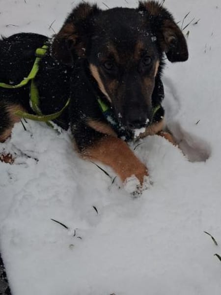 Dort ist er nun seit 26. Dezember 2025 und hat sich jetzt schon zum Familienmittelpunkt entwickelt. Er hat sich ganz schnell in der Pflegefamilie eingelebt und benimmt sich welpentypisch neugierig und lustig.