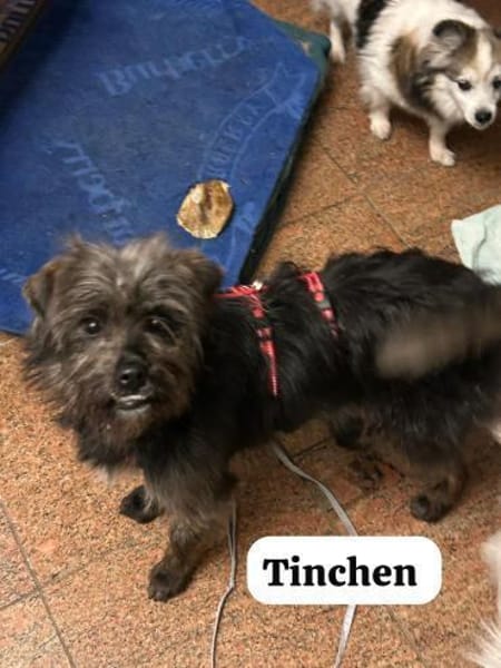 Das arme kleine Tinchen lebte seit Wochen noch um Weihnachten 2025 herum auf der Straße - allein, frierend, hungrig und voller Angst vor all dem Fremden, dem Lärm, der unbekannten Umgebung, den bösen Menschen, die sie entweder gar nicht wahrnahmen oder nach ihr traten, vor der Kälte, den anderen großen Streunern, die sie nicht an die paar Essensreste auf der Straße heranließen und für die sie stets ein Opfer war - kurzum, Tinchen litt sehr und versteckte sich vor jeder vermeintlichen Bedrohung, ohne dass sie dafür einen echten Rückzugsort für sich hatte. Selbst unser Tierheimleiter, der ein wahrer Hundeflüsterer ist, brauchte mehrere Anläufe, um sich ihr Vertrauen zu erobern. Aber gleich nach Silvester war es endlich soweit - Tinchen kam in seine Arme und ließ sich dann auch mit dem Auto nach Hause mitnehmen, nachdem sie noch einen Umweg über die Tierarztpraxis gemacht hatten. Inzwischen ist die kleine Maus gechipt, geimpft, kastriert und auch getestet (alles negativ).