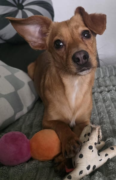 Die rotbraune Schönheit ist wirklich sehr verschmust, wenn sie zur Ruhe kommt. Dann schmiegt sie sich an ihre Menschen und lässt sich das Bäuchlein kraulen. Anfangs braucht sie ein paar Minuten, weil sie durch die schlechte Erfahrung erst einmal Besuch anbellt. Dies geschieht jedoch aus Unsicherheit und nach ein paar Minuten kann jeder mit ihr spielen und das Eis ist gebrochen.