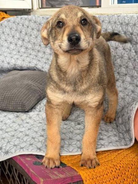 Tyke ist ein fröhlicher, neugieriger Junghund von 5 Monaten und aktuell etwa 40 cm groß. Er liebt es zu spielen, zu entdecken und mit seinen Menschen gemeinsam die Welt zu erkunden. Mit anderen Hunden versteht er sich sehr gut, und auch Katzen akzeptiert er problemlos.