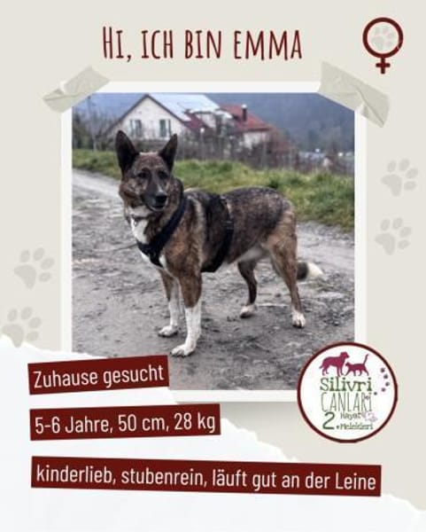 Emma lebt seit Anfang Dezember auf einer Pflegestelle in 74394 Hessigheim und zeigt sich dort als äußerst freundliche, menschenbezogene Hündin. Sie sucht aktiv den Kontakt zu Menschen, genießt Streicheleinheiten sehr und kommt auch mit Kindern gut zurecht.