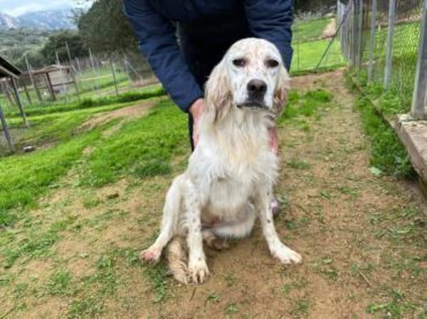 Schnee war schon Ende September 2025 ins Canile gekommen. Die Jagdzeit hatte kurz zuvor begonnen auf Sardinien. Und wie in jedem Jahr, werden in dieser Zeit besonders viele Hunde ausgesetzt (etliche auch einfach getötet), weil sie sich als untauglich für die Jagd zeigen oder sich während der Jagd verletzt haben, und damit -unbrauchbar- für ihren Besitzer geworden sind.