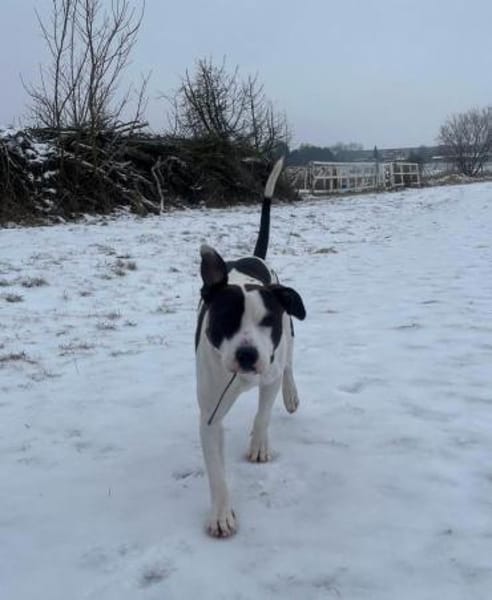 Frieda wurde von ihrer Familie im Juli 2025 aus einer schlechten Haltung übernommen. Die Hübsche hatte zuvor wenig Sozialisierung erfahren dürfen. Mittlerweile hat sie schon so einiges gelernt.