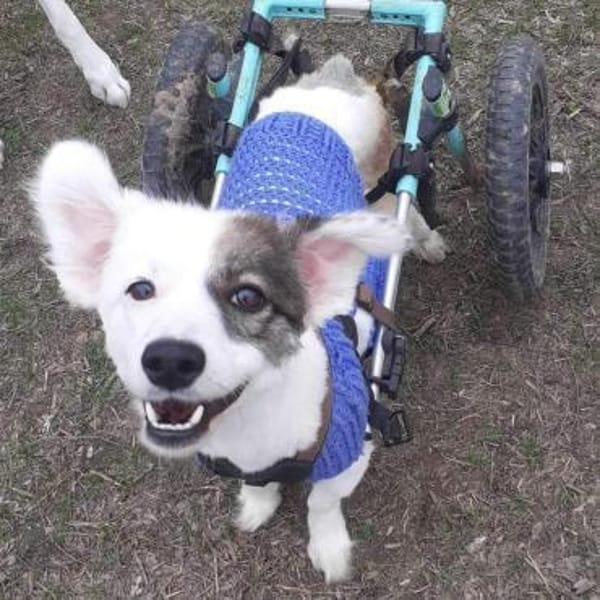 Zum Glück hat man in Dex's Shelter Erfahrung mit 4beinigen -Querschnittlern-, da schon einige davon dort leben und betreut werden - und es stand sogar ein passender Hunde- Rollstuhl herum, aus dem sein vorheriger Besitzer -herausgewachsen- war.