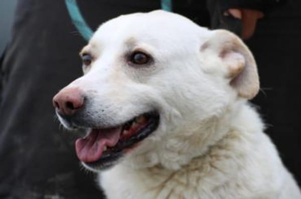 Der schneeweiße Rüde ist kinderlieb und eignet sich sehr gut für eine Familie mit Kindern.