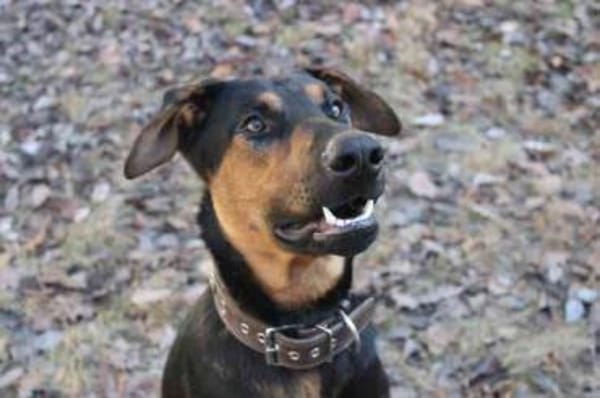 Dieser wunderschöne Dobermann-Schäferhund-Mix bringt alles mit, was man sich von einem jungen Hund wünscht: Er ist freundlich, offen und voller Lebensfreude.