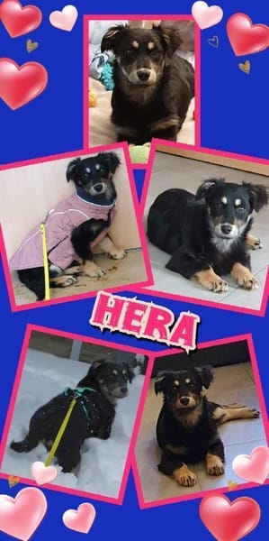 Hera kam letztes Wochenende aus einem rumänischen Shelter und hat sich in inzwischen großteils eingelebt. Der Zwerg hat sich sofort in die Hunde- und Katzen-WG integriert. Teilweise ist sie noch etwas schüchtern und handscheu. Den Lockruf des Kühlschrankes hat sie allerdings sofort verstanden. Nachdem sie sehr neugierig und bestechlich ist, wird sich die anfängliche Zurückhaltung sicher bald geben. Ansonsten läuft sie schwanzwedelnd durch die Wohnung.... immer den anderen Tieren hinterher (nicht dass hier Leckerlis ohne sie verteilt werden).