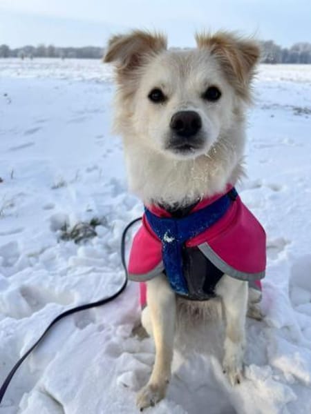 Uns erreichte ein Hilferuf aus Duisburg: Eine Familie hatte Maja im Welpenalter in Deutschland gekauft. Ihr Vater ist sogar ein reinrassiger Spitz. Leider hatten sich die Lebensumstände der Familie inzwischen stark verändert, sodass Maja täglich deutlich länger als acht Stunden alleine bleiben musste. Da man ihr diese Situation nicht länger zumuten wollte und ihr ein besseres, artgerechteres Leben ermöglichen wollte, wandte sich die Familie an uns.