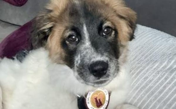 Bentos weiß-braunes Fell hat eine wunderschöne Zeichnung und ist herrlich weich, man möchte ihn am liebsten den ganzen Tag kraulen. Die schwarz-braune Schnauze und seine süßen Hängeohren unterstreichen seinen sanften Ausdruck. Aktuell misst er etwa 46 cm Schulterhöhe und wiegt rund 12 kg. Ausgewachsen wird er ein großer, wunderschöner Rüde werden. Seiner Optik nach bringt Bento vermutlich auch ein paar Herdenschutzgene mit. Daher wünschen wir uns für ihn ein liebevolles Zuhause mit ausreichend Platz, klarer Führung und Menschen, die seine wachsamen Eigenschaften in die richtigen Bahnen lenken und ihm Sicherheit geben.