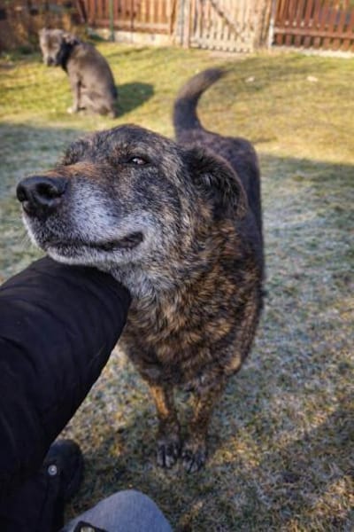 ich bin Shadow ein großer, schwarzer Kuschelbär mit einem noch ein kleines bisschen zu viel auf den Hüften (ca. 26 kg 🙈). Aber hey, wir arbeiten dran! Ich bin ungefähr 55 cm groß und wurde etwa 2018/2019 geboren also im besten Alter: erwachsen, aber noch voller Lebensfreude.