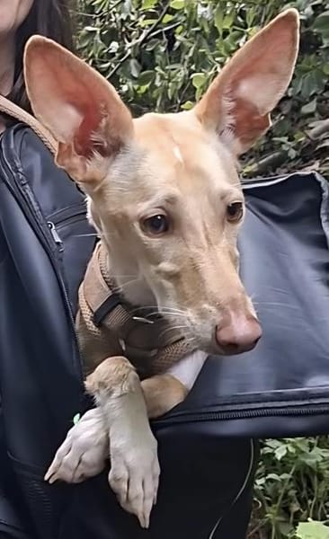 ich heiße Kinsi. Ich bin im Oktober 2023 geboren, eine kleine Podenco-Mischlingshündin und mittlerweile circa 50 cm groß und 9 kg leicht.