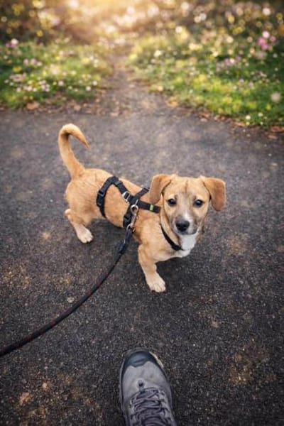 An der Leine laufe ich schon richtig schön und entdecke aufmerksam meine Umgebung. Und ja ich erzähle auch gerne mal etwas ein kleines Winseln hier und da gehört zu meinem Kommunikationsstil. Ich kommentiere das Leben eben charmant. 😉