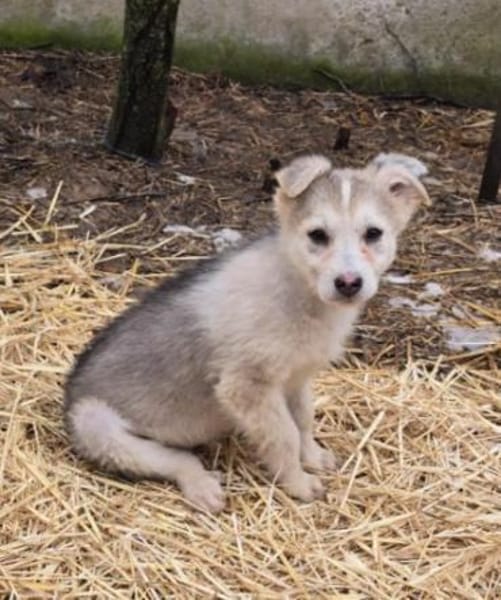 Ida ist eines der 14 Welpen, aus 2 Würfen, die mit ihren Müttern in einem Feld bei bitterkalten Temperaturen lebten und sichergestellt wurden.