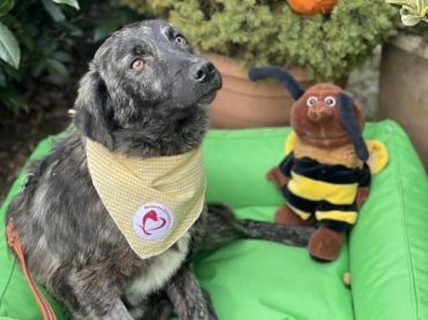 Pippo ist 6 Monate alt und wird einmal mittelgroß. Seine wunderschöne Fellzeichnung erinnert an Biene Maja ein echter Hingucker.