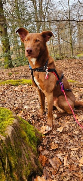 Harry läuft sehr schön an der Leine, und auch die Schleppleine klappt sehr gut. Der Süße fährt problemlos Auto und bei Hundebegegnungen zeigt er keine Probleme. Harry ist durchweg ein netter Typ mit viel Potenzial. Auf fremde Reize reagiert er allerdings schreckhaft.