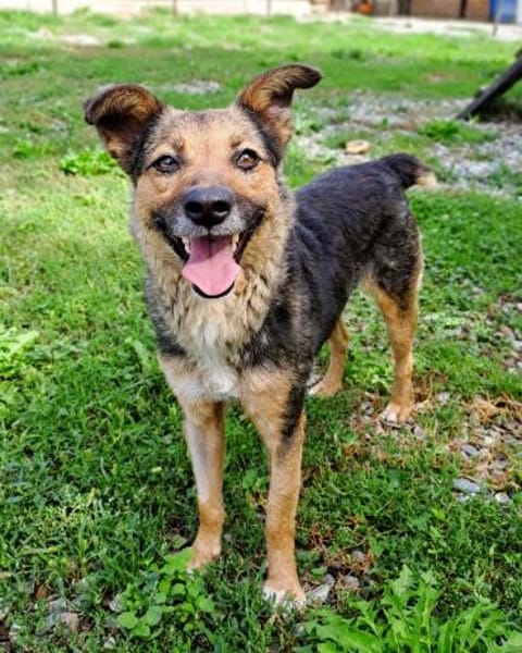 COSMINA (*2021) kam ursprünglich aus Rumänien und lebt nun sehr glücklich und rundum zufrieden in einem kleinen Hunderudel auf ihrer Pflegestelle in Alheim.