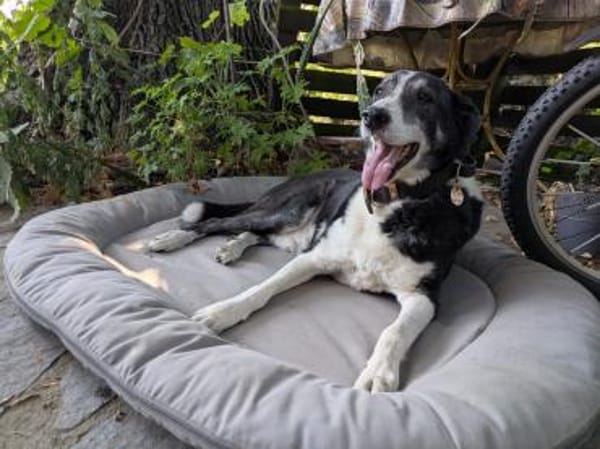 Dort genießt er seine -alten- Tage, indem er täglich seinen großen Hof kontrolliert, ab und an mit seinen jüngeren Rudelkumpels spielt oder gar mit seiner Präsenz für Ruhe und -gutes Benehmen- bei den Jungspunden sorgt. Er mag es nach wie vor bei Gassirunden den nahe liegenden Wald zu erkunden. Den Großteil des Tages verbringt Domino gerne auf einem seiner gemütlichen Beobachtungsposten auf dem Hof oder seelenruhig schlummernd im Haus.