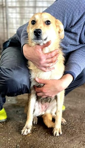 Suri ist eine ca. 7/2024 geborene zarte Mischlingsündin mit einer Schulterhöhe von ca. 48 cm und einem Gewicht von ca. 12 Kg.