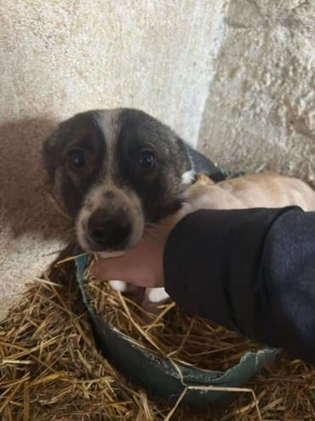 Eine Frau hat ihn samt Babies und Mama Paula abgegeben. Angeblich hat sie die Familie auf dem Feld gefunden und ihr Mann will nicht, dass sie die Hundchen behalten.