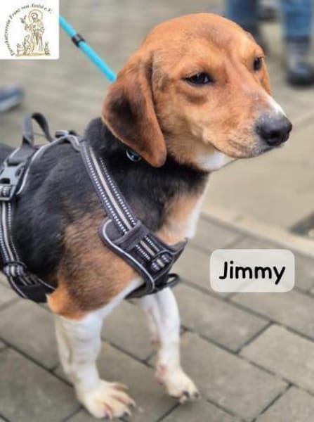 Sein vorübergehendes Zuhause teilt er sich entspannt mit weiteren Hunden, und auch die Hauskatzen werden von ihm akzeptiert. Bei Hundebegegnungen außerhalb seines Pflegezuhauses zeigt sich Jimmy entspannt und freundlich.