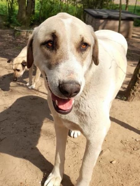 Pina ist eine ca. 3/2021 geborene Herdenschutz-Mix-Hündin mit einer Schulterhöhe von 75 cm und einem Gewicht von ca. 60 kg.
