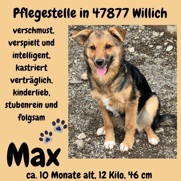 Max ist ein absoluter Teamplayer und teilt sich sein aktuelles Heim harmonisch mit vier anderen Hunden. Max ist bereits kastriert und stubenrein .