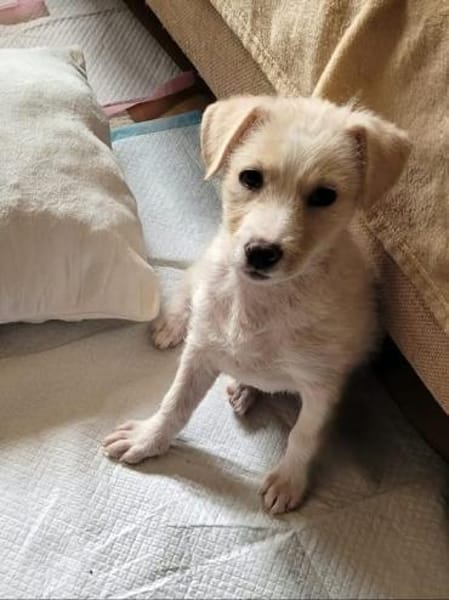 Hati wurde am Rand einer viel befahrenen Bundesstraße alleine gefunden. Sie war sehr verängstigt und verwirrt. Sobald sie gerettet wurde und sich sicher fühlte, taute sie auf und wurde zu einem süßen und freundlichen Welpen.