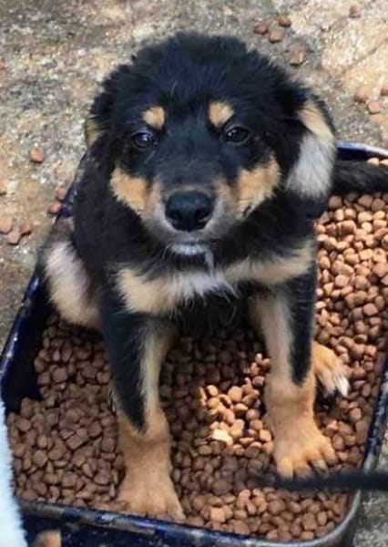 Ich bin zufällig gerade durch das Tor vor das Tierheim gegangen und sehe einen Welpen völlig verängstigt vor dem Eingang sitzen. Als ich versuchte, ihn auf den Arm zu nehmen, ergriff er sofort die Flucht.