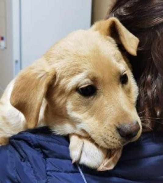 Zeus wurde mit seinen Geschwistern von einem Firmengelände gerettet, wo sie im tiefsten Schnee ausharren mussten. Jetzt werden sie liebevoll bis zur Ausreise am 03.04. 2026 gepflegt.