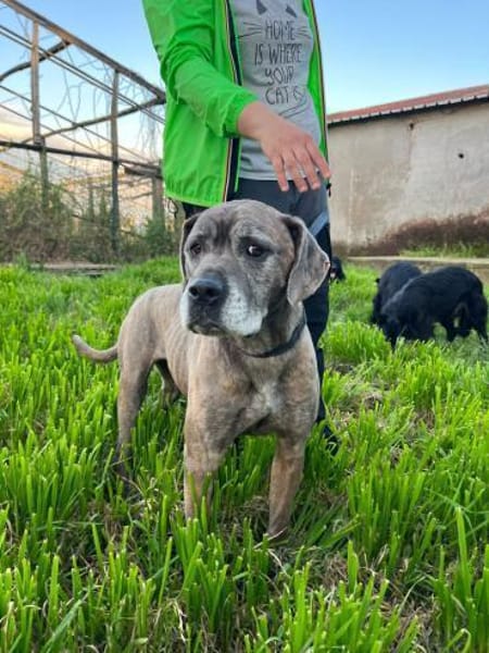 Tea sieht rein optisch aus wie ein Cane Corso, es könnte bei ihr aber auch eine Dogge mitgemischt haben, aber natürlich wissen wir nicht was in ihr genau steckt. Aber eines wissen wir: Tea ist eine sanfte und anhängliche Hündin. Sie mag es nicht, wenn zu viel Zug über die Leine auf ihren Hals ausgeübt wird. Sie hat wahrscheinlich schlechte und üble Erfahrungen gemacht damit. Aber wenn die Leine durchhängt und am Hals nicht geruckt wird, dann läuft sie locker und brav neben ihrem Menschen an der Leine mit! Daher ist bei Tea zukünftig ein Geschirr empfehlenswert. Tea ist derzeit noch recht dünn und müsste noch ein wenig gepäppelt werden.