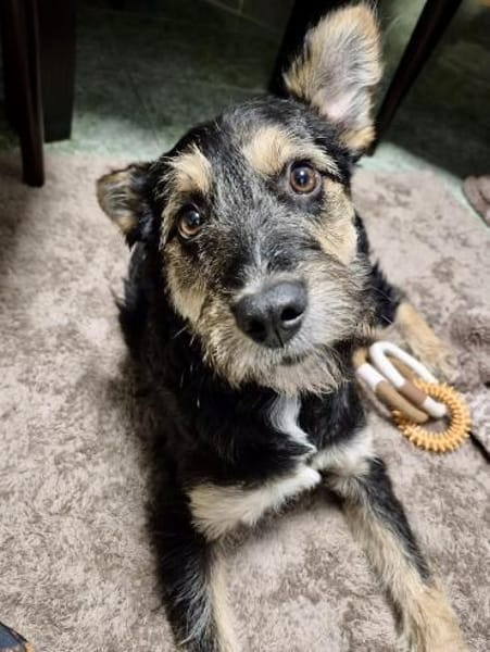 Die junge Hündin zeigt sich bisher freundlich und aufgeschlossen, nur bei Männern ist sie noch etwas schüchtern. 🐕
