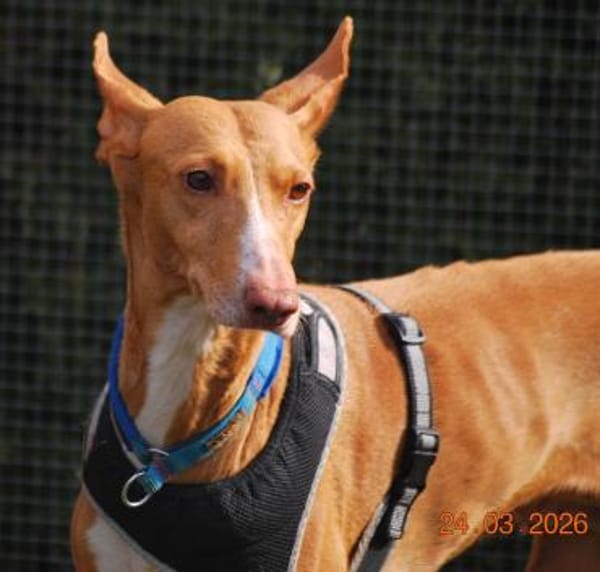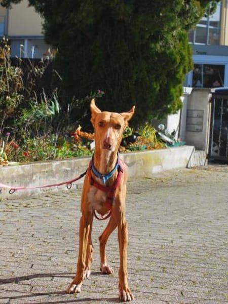 Estrella ist eine aktive, lebensfrohe und sensible Podenco-Hündin, die noch viele schöne Jahre vor sich haben kann. Podencos gelten als zäh und langlebig Estrella bringt also beste Voraussetzungen für ein erfülltes Leben an der Seite liebevoller Menschen mit. Sie versteht sich gut mit anderen Hunden, ist etwa kniehoch und wiegt 19 kg.