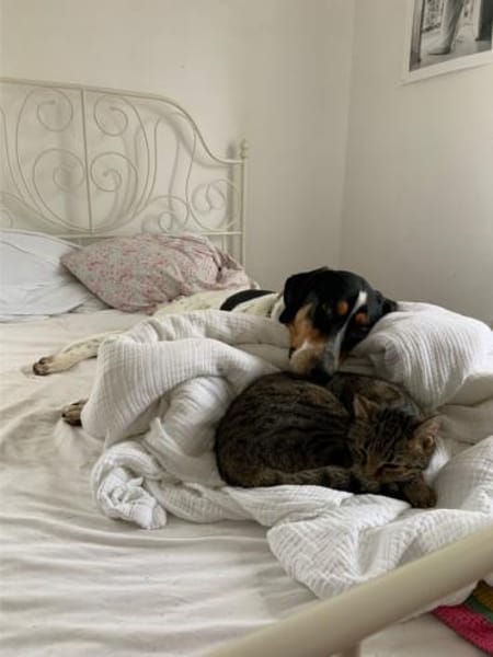 Lasse ist mit anderen Hunden gut verträglich. Er besucht regelmäßig eine Sozialkontaktstunde und lebt derzeit mit einer intakten Hündin zusammen, zeitweise auch mit einem kastrierten Rüden. Aktuell lebt er mit einem Kater zusammen. Dabei zeigt er sich freundlich, reagiert jedoch bei aufkommender Dynamik etwas stürmisch. Katzen sollten daher idealerweise bereits an das Zusammenleben mit Hunden gewöhnt sein.