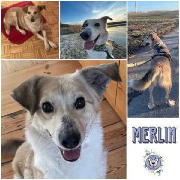 Bei den ersten Stadtspaziergängen zeigte er sich zunächst beeindruckt von vorbeifahrenden Autos, ließ sich jedoch stets sicher führen und zeigte keine Angst- oder Panikreaktionen. Auf seiner Pflegestelle lebt er mit zwei weiteren Rüden zusammen, die er toleriert und akzeptiert. Er zeigt keine Ressourcenverteidigung, ist aber stets am Start, wenn es um Streicheleinheiten geht. Wir können uns Merlin auch gut als Einzelhund vorstellen, da er die anderen beiden Hunde nicht unbedingt als Sicherheit oder zur Orientierung benötigt. Er bindet sich schnell an seine Bezugsperson, ist sehr zutraulich und fordert sich seine Streicheleinheiten ein.