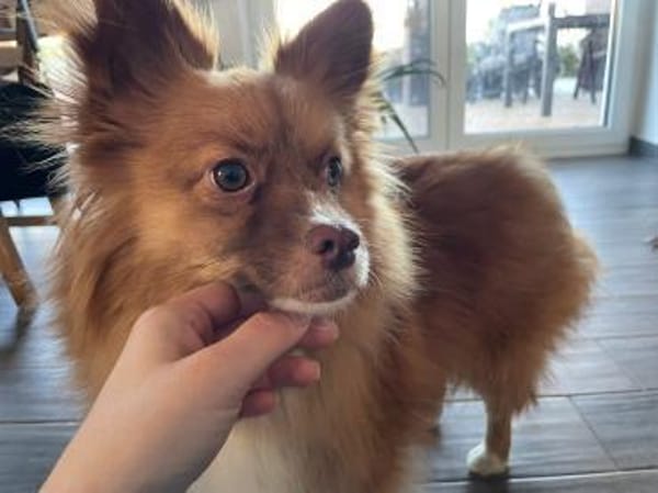 Fox ist 1,5 Jahre alt, wiegt 8 kg, läuft prima an der Leine und ist sehr menschenbezogen.